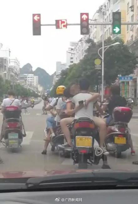 5月27日,一张发生在河池市宜州区的图片引发网友热议,当地交警部门介入调查后,发现当事男子无证驾驶,女子存在坐姿违规、影响驾驶人安全驾驶、未戴头盔等违规行为。据了解,开摩托车的男子是17岁的蓝某,坐在他大腿上的女子是16岁的毛某。28日,两人被交警部门依法处罚。